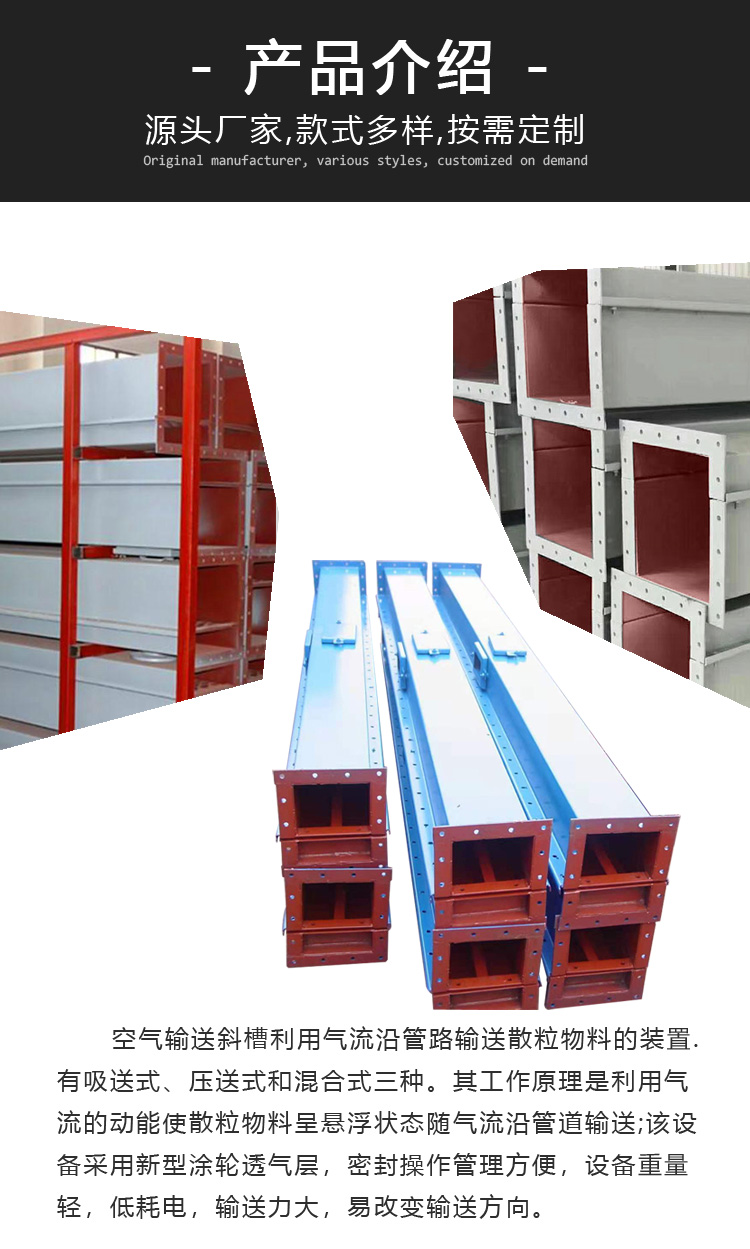 B200-B500空氣斜槽生產廠家,主要型號分別為:B200,B250,B315,B400,B500等;密封性能好,輸送產量大,可定制生產。