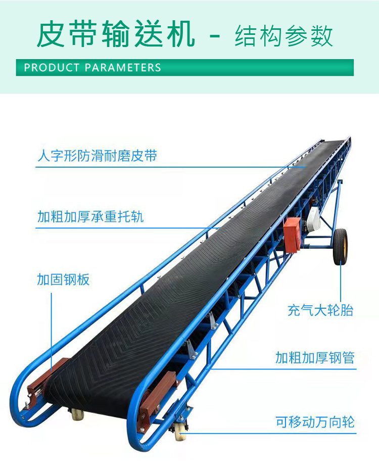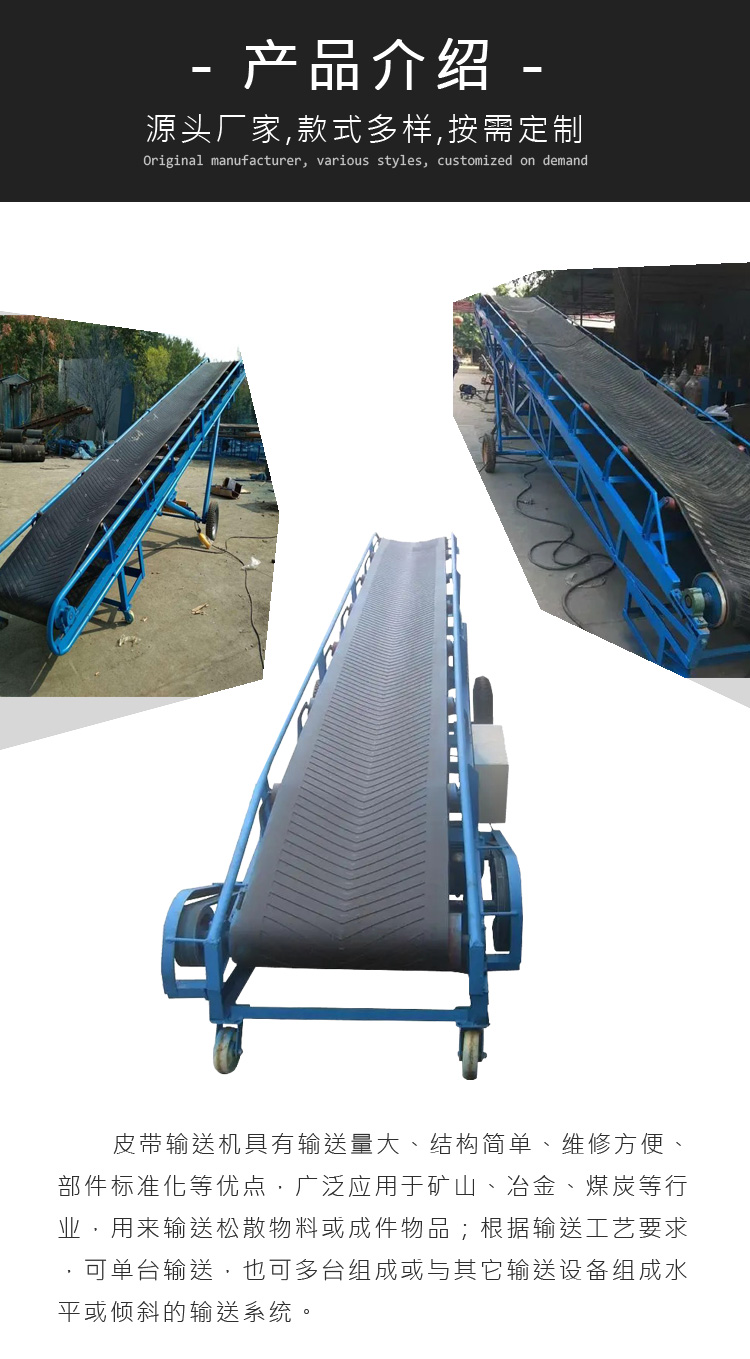 移動式皮帶輸送機廣泛用于煤礦、糧食等行業,其具有結構簡單、輸送量大、維修方便等特點,根據生產需求可單臺或多臺使用,以滿足不同的作業需求。