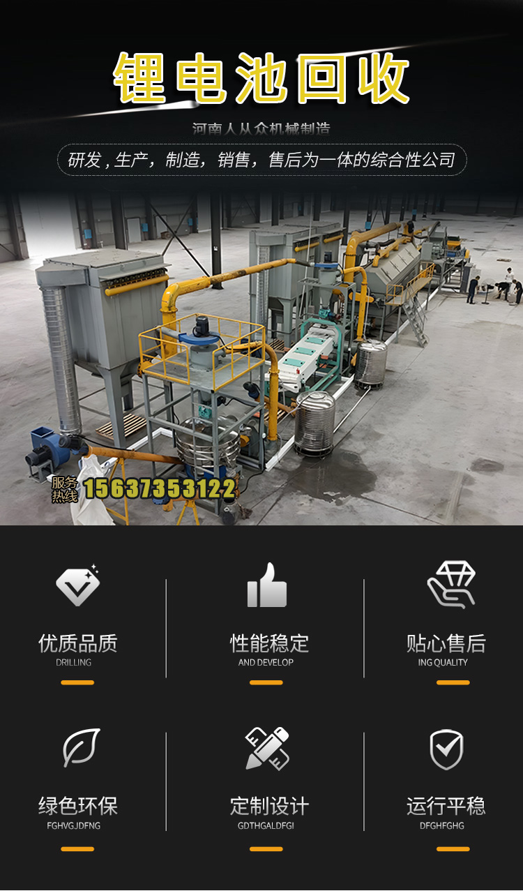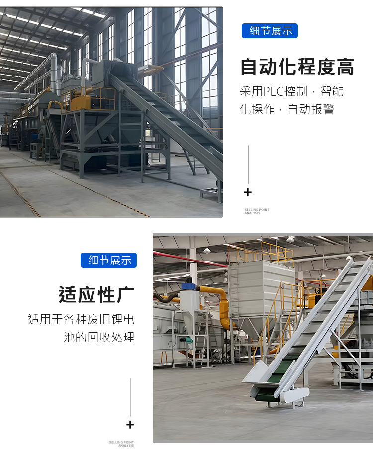 廢舊新能源鋰電池回收處理設備,鋰電池破碎分選設備生產線, 全程智能化流水線作業。