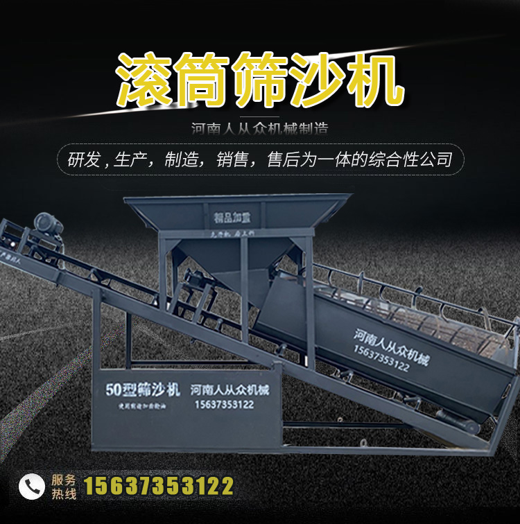 大型滾筒篩沙機(jī)模仿了人工使用斜篩篩砂的情況,整體與地平面處于一定夾角的傾斜狀態(tài),保證篩筒內(nèi)物料流可以連續(xù)滾動(dòng)多次循環(huán),通過(guò)反復(fù)滾動(dòng)滑動(dòng),使砂料充分分散和分離。