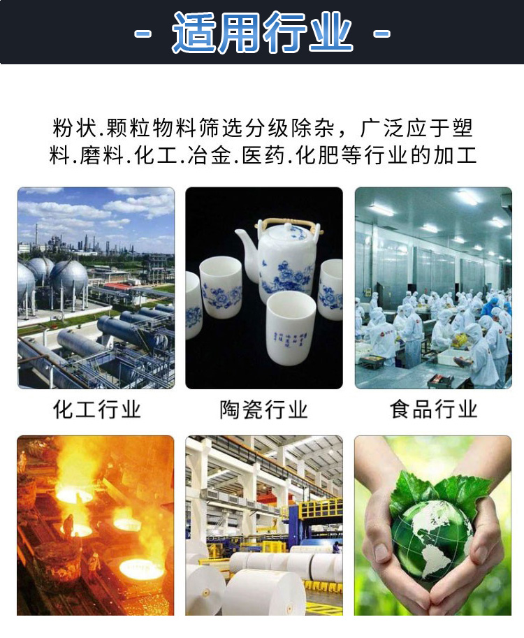 直線振動篩是利用振動電機使物料在篩網上做定向拋物線運動,通過多層篩網可產生不同規格的物料,具有高產低耗、自動卸料等特點,適合流水線作業。